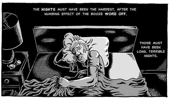 Throughout the piece he constantly criticises the parents for their neglect and selfish approach to parenting. They continually ignore his needs over theirs, and while going through their separation, spent more time consumed with petty squabbles than tending to their oldest son. Dahmer’s upbringing has been documented in multiple instances as a key cause for his descent, but once again, the way Beckderf provides this information seems self-satisfactory. In many monologues, the author constantly says he couldn’t believe that Dahmer’s parents didn’t notice anything strange about their son, and their cluelessness or neglect was lamentable. However, Beckderf frequently tells the reader that he could “see the signs” when others couldn’t, that when Dahmer would act out or make a scene, while others laughed, he silently worried. Yet, he did nothing with these worries! In the one panel where he addresses why he didn’t reach out, his answer was that “It was 1976”, “I wasn’t a nark” and “I had my own life”. Further, when discussing Lionel Dahmer’s (Jeffrey’s father) book, “A Father’s Story”, he described it as a piece “about what (his father) didn’t know”, whereas the current piece is about what he and his friends did know. Even if his father and mother were not attentive parents, which means blame would rest on them, Beckderf spends a lot of this piece condemning them for not knowing, while simultaneously recounting every time he knew something was wrong, but didn’t say anything.
