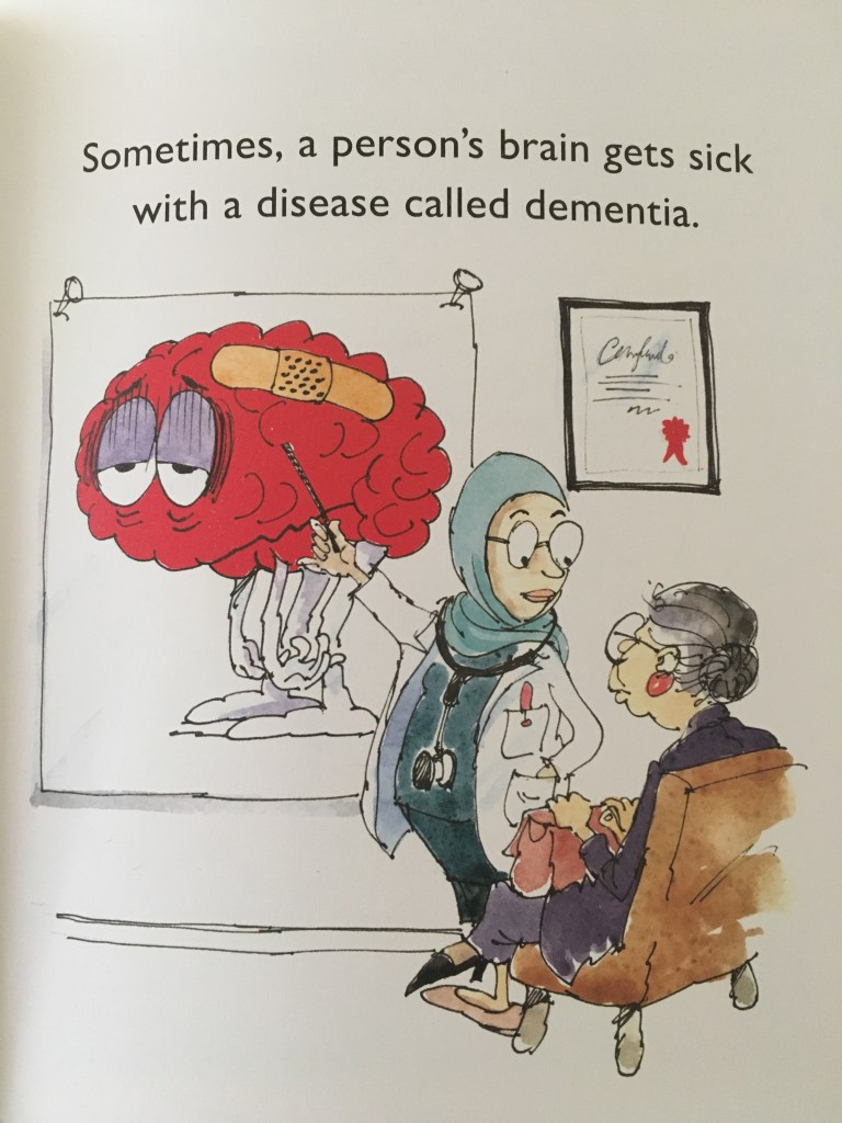 Moore does an excellent job describing dementia in a way accessible to children. She is able to be insightful as opposed to overwhelming, which seems almost impossible when discussing such a serious condition. In fact, the book often dispels misconceptions that might be had of such a frightening disease, providing its course in a digestible manner. The analogies used provide examples that are easy to understand (“[the brain] drives our body a bit like a person drives a car”) and ascribe meaning to abstract concepts through things children can understand. Despite this, Moore does not mitigate the severity of the disorder. At first this was confronting, but the points discussed are essential in adjusting children to their situation. As is noted in the “Guide for Grown-ups” at the beginning, “the reality can be less frightening for a child than the unknown”.