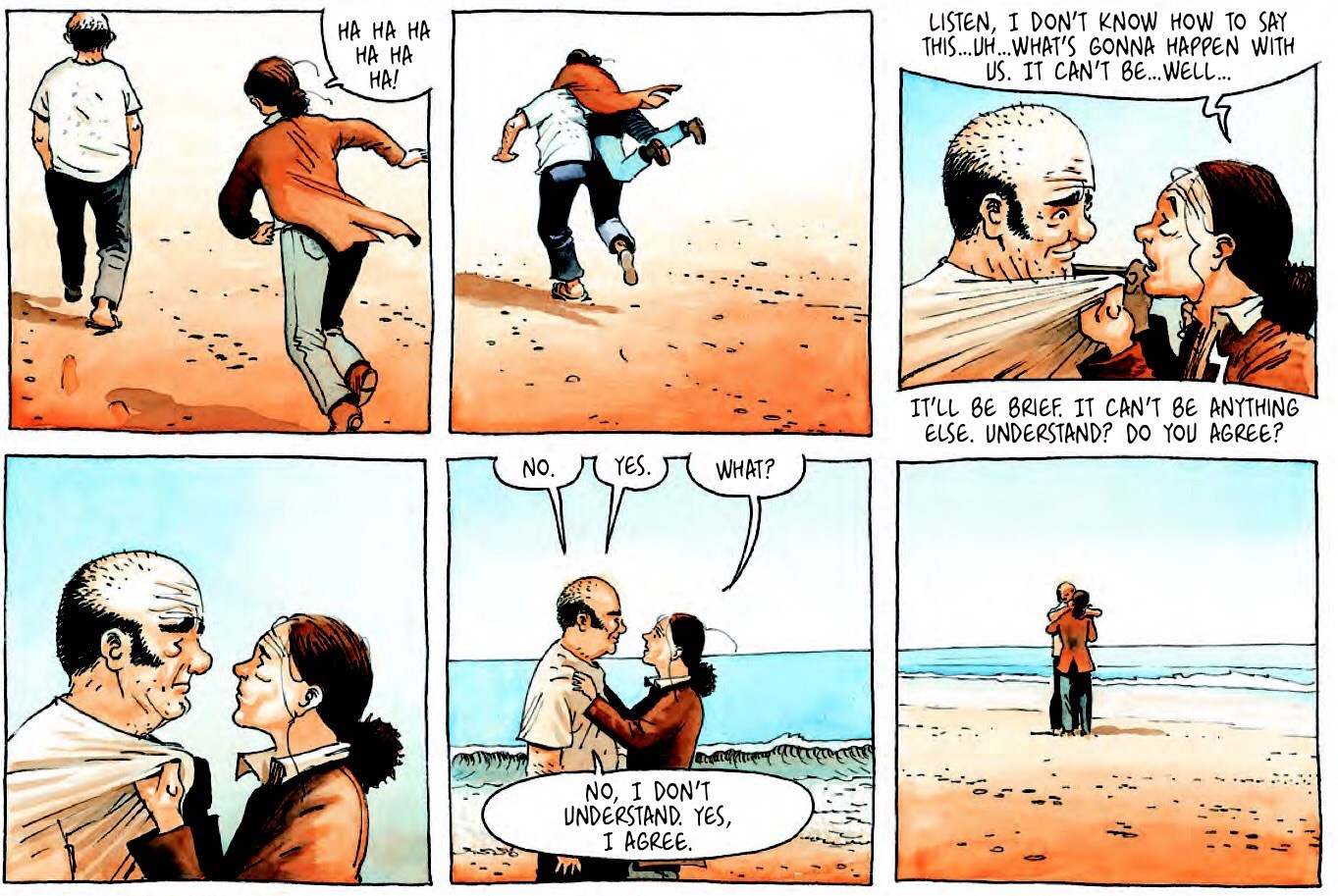 The artwork in this piece was good, but never exceptional. The depictions of various landscapes around coastal France were a highlight, almost nostalgic in inception, but was quality in its own right . There is a clear distinction between romanticism and beauty in this piece, and the art upholds this idea by ascribing normality to the cozy towns Lulu visits. However, artistic detail, particularly with characters in this piece seems to be substituted for the use of colour. While the colour did add to the mood, with washed out colours accentuating a sense of melancholy, I would have preferred more detailed illustrations, which would have helped develop the character’s ability to produce emotive expressions (which is why I gravitate towards reading manga). This meant that at multiple times, the construction of faces and expressions seemed quite awkward or abnormal. I liked what they author attempted to do with the character design. Lulu’s lover is not an attractive man, nor does he seem particularly charismatic. She does not befriend a bunch of colourful characters over her tale, and their appearances reinforces this, further separating itself from this romantic sense of adventure that may be ascribed to a character running away. But designing “unattractive” figures with the illustrative style did not normalise them, because Davodeau’s story still bathed them and the story in Clichés.