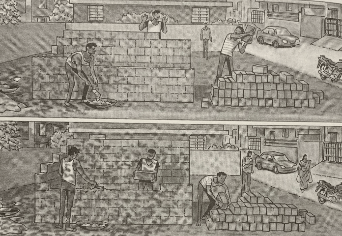 It is not just through class struggles and political instability that these Indian artists have pulled on the heartstrings of the gekiga faithful. It’s also through fluid, simple, but often surrealist imagery that these stories resonate so strongly with manga enthusiasts. One may read Susumu Katsumata’s Book of Straw in the same vein as Bharath Murthy’s P1. do the needful. Both explore their respective issues through the use of animal symbols, cultural isms and introspective narration. The way in which the characters and environment blur into one produces a cohesive reading experience, one that allows the avant-garde imagery to seep into stories. While evident in Volume 1’s The Student by Biboswan Bose, it is in the second volume, significantly larger than its predecessor, where abstraction takes centre stage.