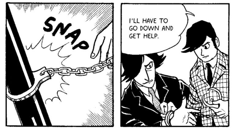 But in the final work, Hand-cuffs, we are thrown yet another curve-ball. This piece, about a detective’s struggle subduing a criminal in the mountains, is one of four pieces Tsuge re-wrote from previous works in order to find some form of inspiration (alongside The Phony Warrior, A Strange Letter and The Ninjess). The original version of the piece, which was published under gekiga legend Yoshiharu Tatsumi’s name, was actually conceptualised by Tsuge’s brother, Tadao. The story itself shares unabashed similarities to Tatsumi’s gritty Black Blizzard, and ends the collection with a linear story, which, as a reader, was satisfying. We were taken on a journey, but brought back to earth before its completion.